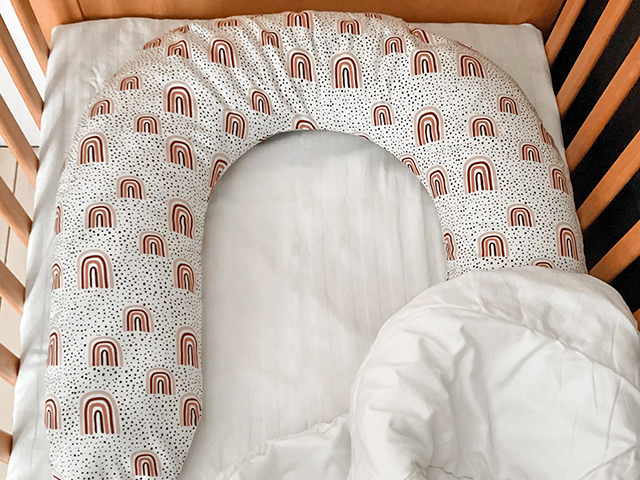 • Во время беременности с подковой удобно сидеть – она поддержит уставшую нижнюю часть спины, зону шеи и плеч, а лежа в положении на боку, можно охватить подкову ногами, так обеспечивается поддержка для живота будущей мамы.